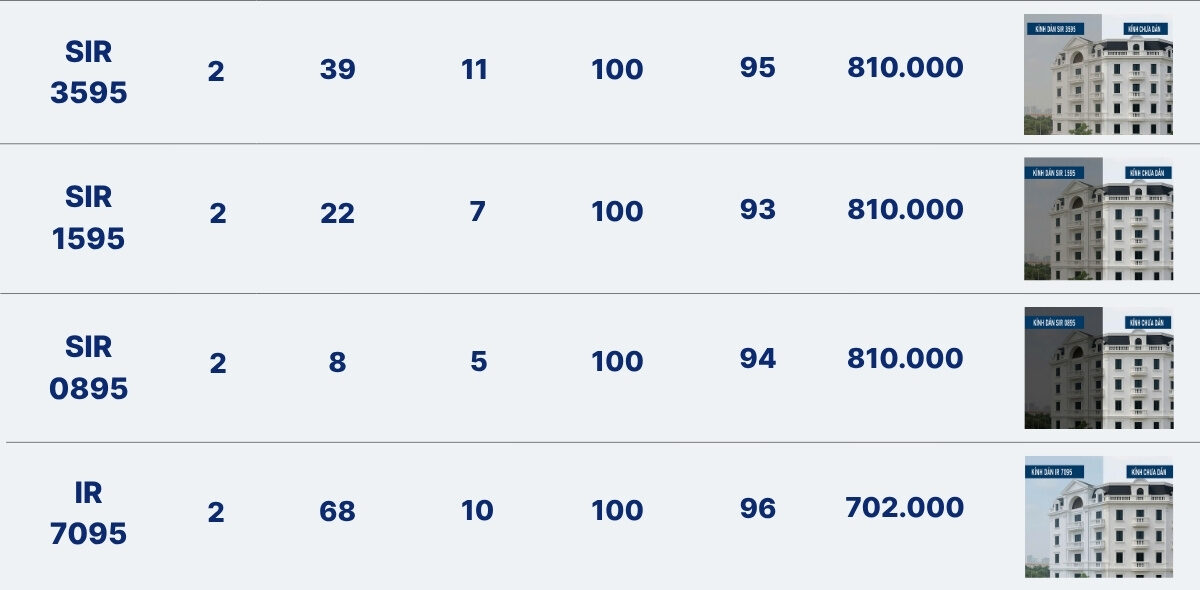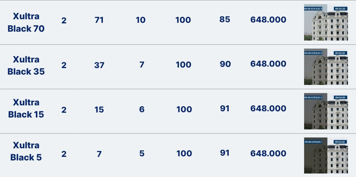 Khu vực nắng gắt, hướng Tây: chọn SIR 0895 hoặc Xultra Black 5.