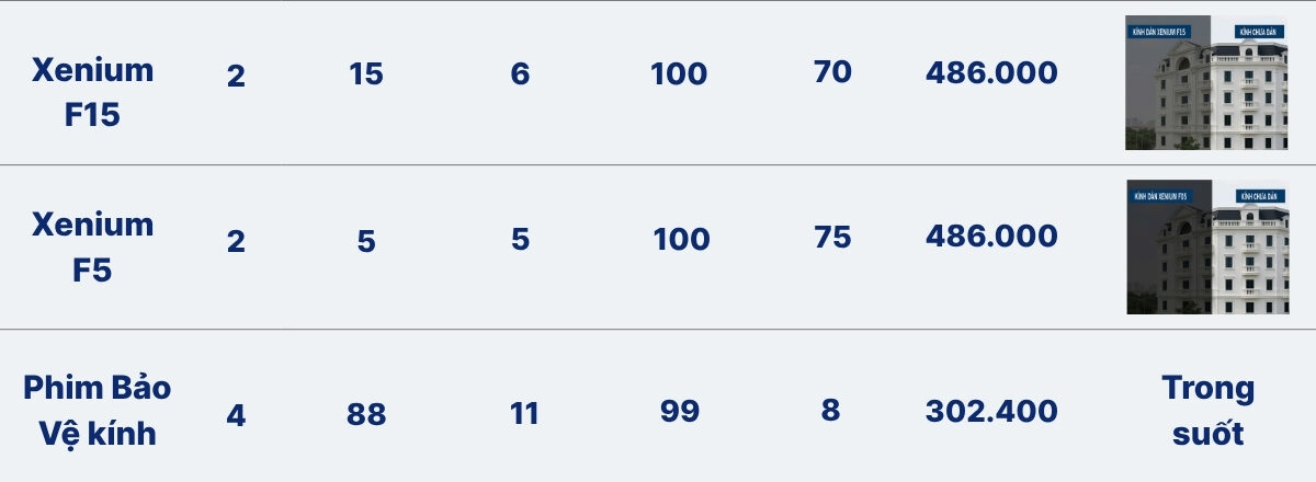- Giá được tính theo diện tích trong lòng kính thực tế