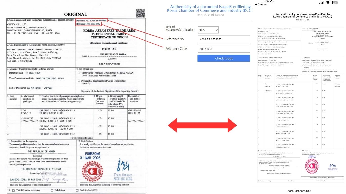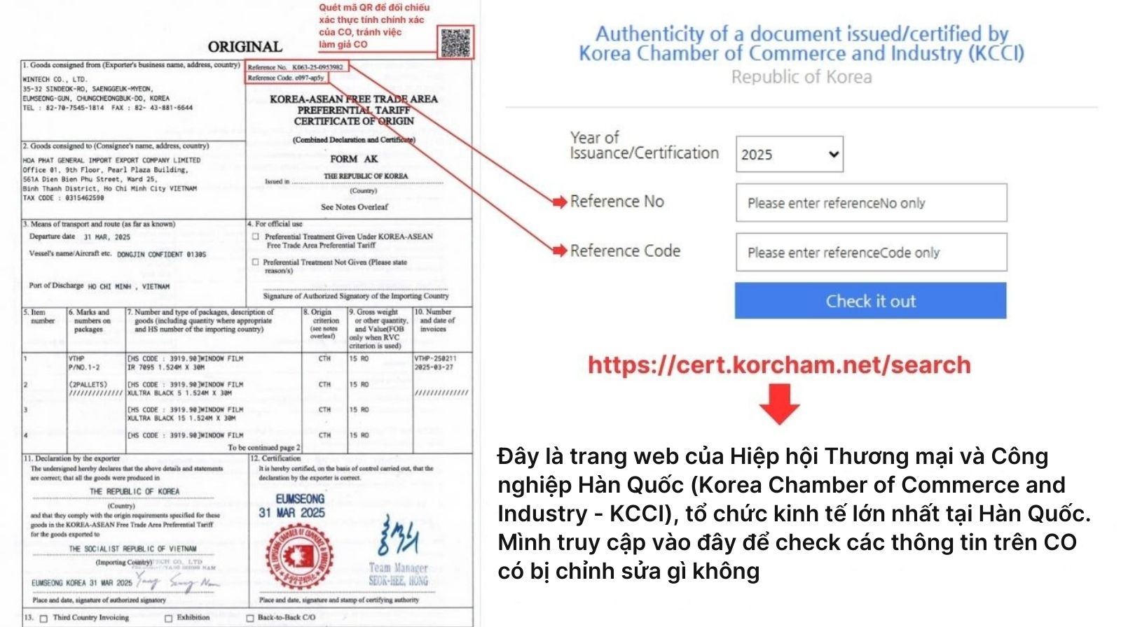 📌 Ví dụ: Bạn thấy trên CO ghi Reference No: 12345/2025. Khi nhập vào hệ thống tra cứu, nếu không hiển thị CO gốc → khả năng cao giấy tờ đó đã bị chỉnh sửa hoặc làm giả.
