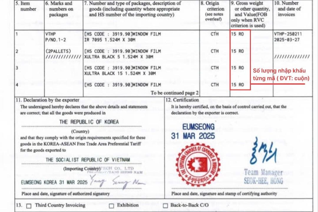 CO (Chứng nhận xuất xứ) chính là “tấm căn cước” của hàng nhập khẩu. Đặc biệt với phim cách nhiệt – sản phẩm 100% phải nhập từ nước ngoài, chỉ có CO mới chứng minh được hàng bạn mua là chính hãng hay không.