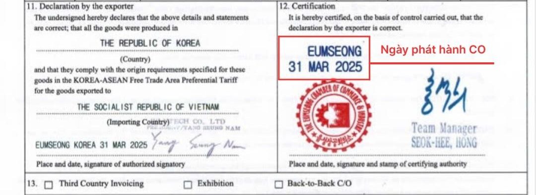👉 Nguyên tắc: Ngày phát hành CO phải phù hợp với thời điểm hàng về Việt Nam.
