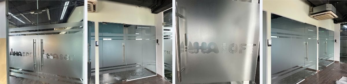 🔹 Decal mờ in logo công ty – tăng nhận diện thương hiệu