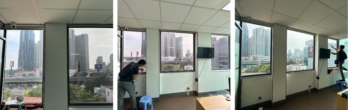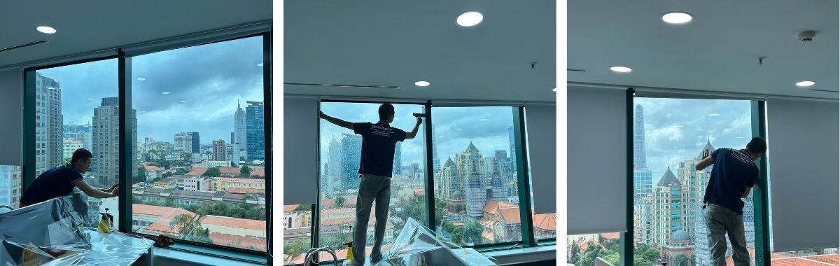 Thi công dán phim cách nhiệt chống nhìn 1 chiều