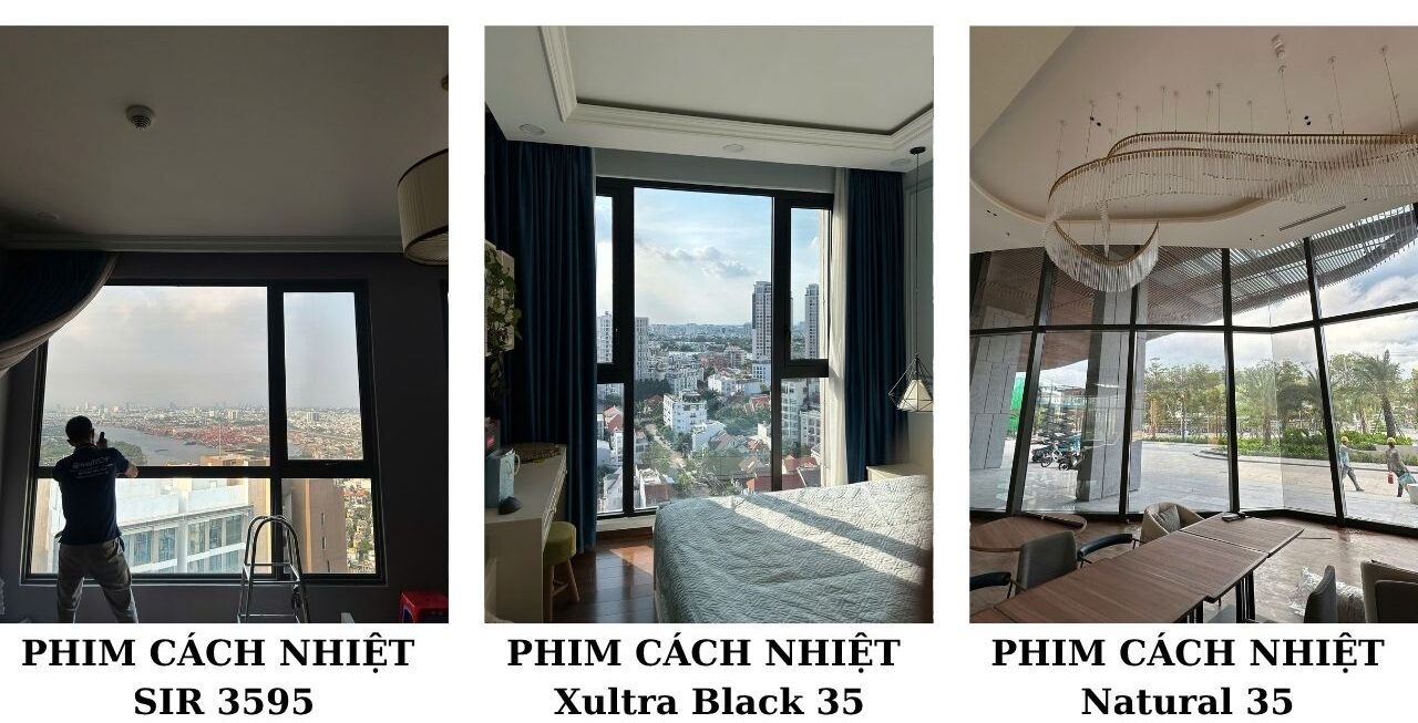 SIR 1595 (tối màu, cản nhiệt mạnh,độ trong vừa phải, vẫn nhìn view ra ngoài tốt). Phù hợp muốn chống nóng tối đa, bền màu lâu năm, hiệu quả cao.