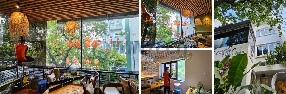 Thi công dán phim cách nhiệt cho quán cafe