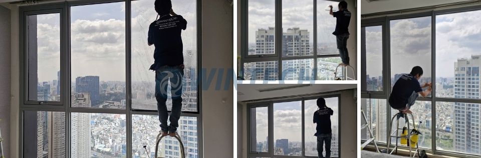 Thi công dán phim cách nhiệt tại căn hộ Vinhomes