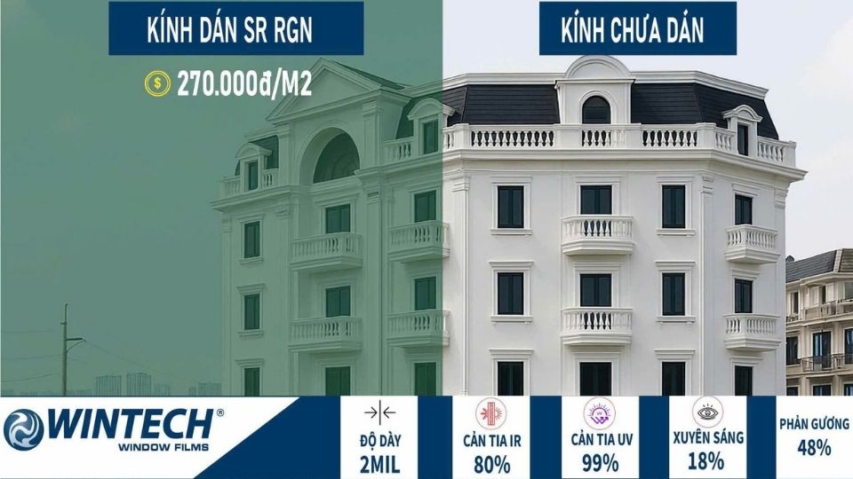 Phim cách nhiệt SR RGN Wintech là dòng phim phản quang xanh lá, được thiết kế để giảm nhiệt, giảm chói và tăng riêng tư ban ngày, đồng thời giữ màu kính mát mắt, hài hòa với không gian sống. Việc nắm rõ ưu – nhược điểm sẽ giúp lựa chọn đúng nhu cầu sử dụng.