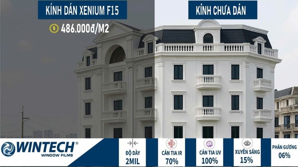 Xenium F15 giúp hạn chế lượng nhiệt và nắng gắt xuyên qua kính.