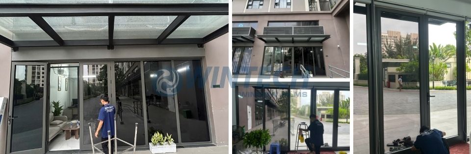Thi công dán phim cách nhiệt cho cửa mặt tiền