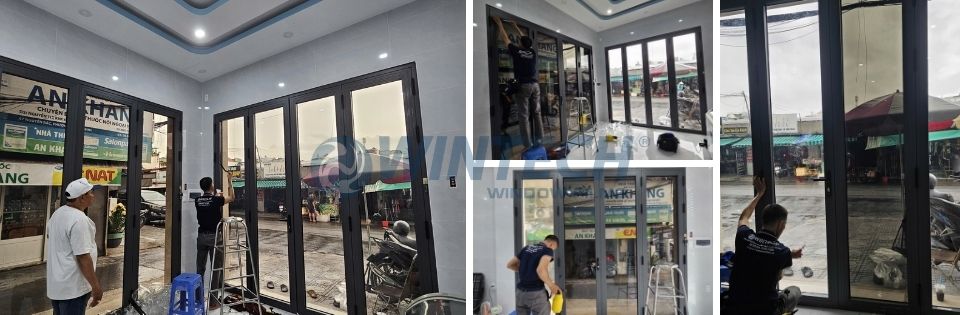 Thi công dán phim cách nhiệt cho cửa mặt tiền