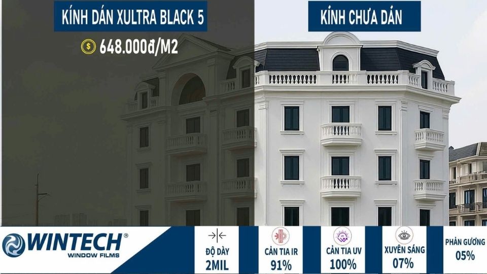 Với độ truyền sáng rất thấp (~5%), Xultra Black 5 giúp che nhìn gần như hoàn toàn từ bên ngoài.