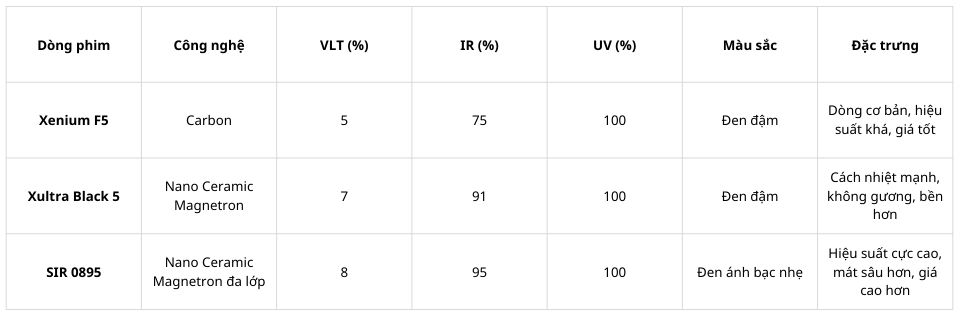 Độ tối rất cao (VLT ~5%) Che nhìn gần như hoàn toàn, tạo mức riêng tư cao nhất trong nhóm phim Xultra.