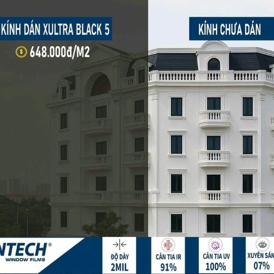 👉 Phim cách nhiệt Xultra Black 5 phù hợp cho những không gian cần kín đáo gần như tuyệt đối, chấp nhận kính rất tối để đổi lại sự riêng tư và cảm giác an tâm tối đa.