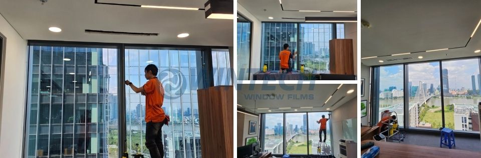 Thi công dán phim cách nhiệt cho văn phòng nhà máy nước nhà bè