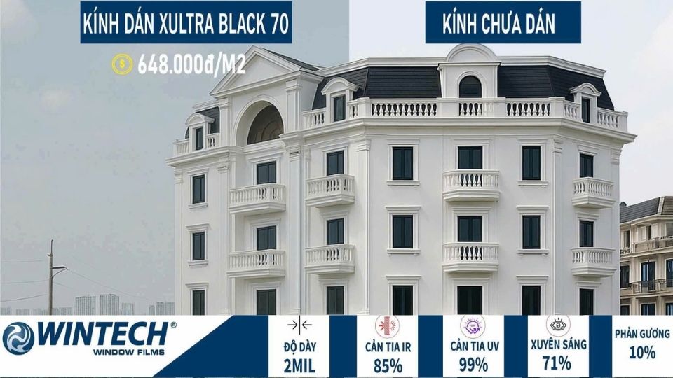 Phim cách nhiệt Xultra Black 70 không sinh ra để xử lý các nhu cầu mát sâu hay che sáng mạnh, mà được thiết kế cho những công trình cần kính sáng, view đẹp, dễ dùng và chi phí hợp lý.