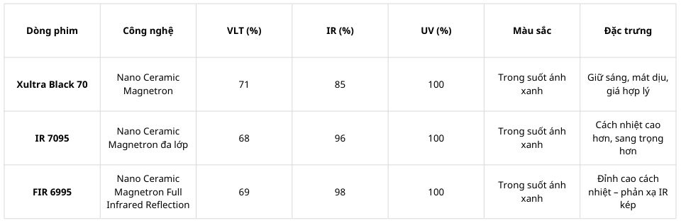 So với IR 7095 hay FIR 6995, Xultra Black 70 có hiệu suất cách nhiệt thấp hơn.
